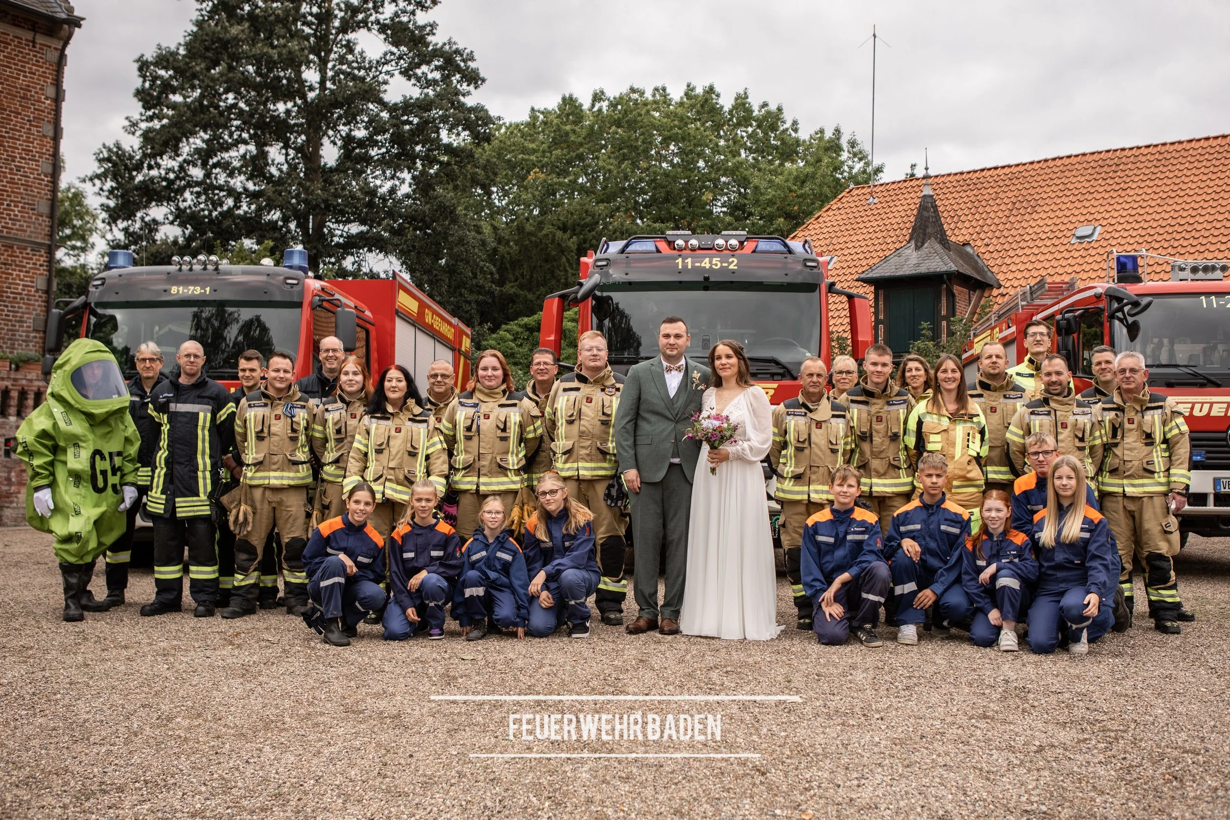 Am Samstag, den 27.09.25, haben sich unser Kamerad Julian und seine Neele das Ja-Wort gegeben. Gemeinsam mit dem Gefahrgutzug und der Jugendfeuerwehr haben wir für die beiden Spalier gestanden und im Anschluss einen kleinen Sektempfang organisiert.