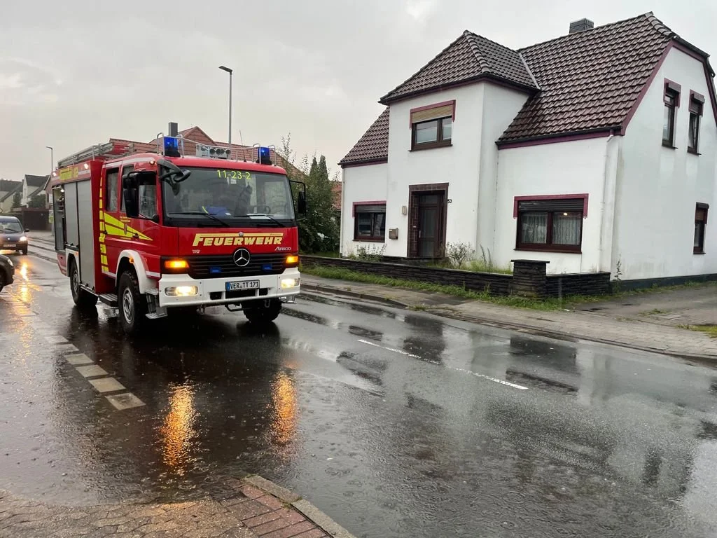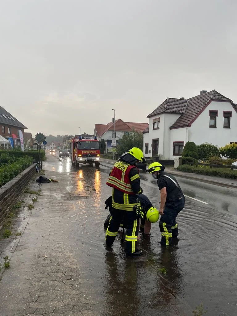 Auf dem Rückweg wurde zusätzlich noch eine Überschwemmung in der Bahnhofstraße beseitigt. Hier wurde ein verstopfter Gully wieder vom Laub befreit.