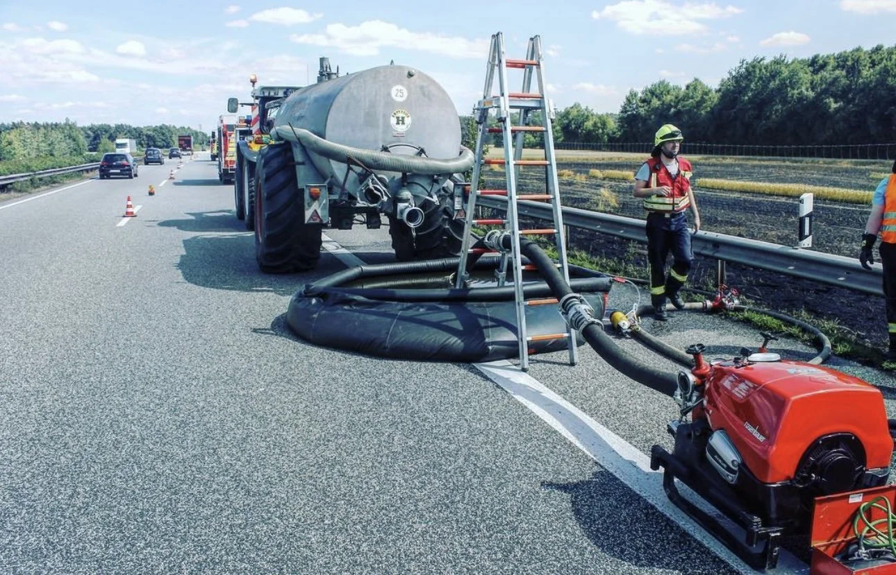 Die Einsatzkäfte der Ortsfeuerwehr Baden wurden zu einem Böschungsbrand direkt an der Autobahn A27 alarmiert. Durch Arbeiten an der Leitplanke fing die angrenzende Böschung auf ca. 300 m² an zu brennen.