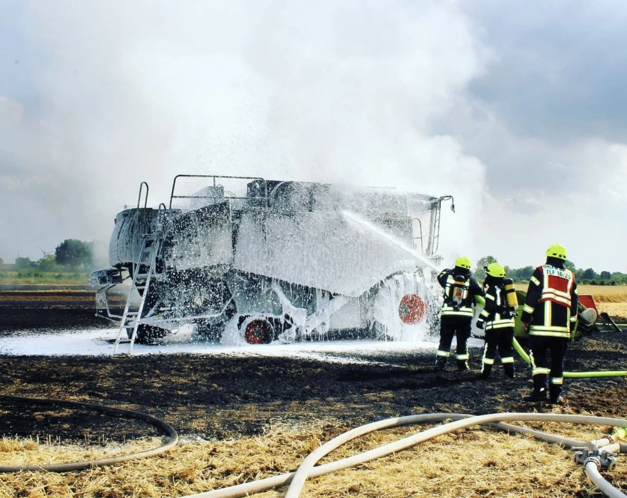 Keine Pause für die Ortsfeuerwehr Baden. In Werder, ein Ortsteil der Samtgemeinde Thedinghausen, fing am Nachmittag ein Mähdrescher auf einem Feld an zu brennen. Durch die weiterhin anhaltende extreme Trockenheit fing das Feld ebenfalls schnell Feuer.