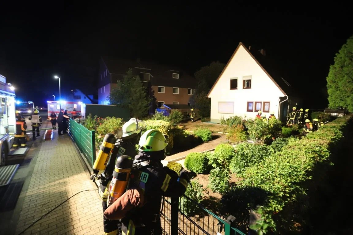 Beim Eintreffen der Einsatzkräfte zeigte sich das Einfamilienhaus stark verraucht und eine Person rief auf dem Balkon um Hilfe. Mit einer Steckleiter wurde die Person vom Balkon gerettet und an den Rettungsdienst übergeben. Danach erfolgte der Innenangriff mit einem Angriffstrupp unter Atemschutz und einem C-Rohr. Das Gebäude wurde abschließend mit einem Überdrucklüfter entraucht und an die Polizei übergeben.