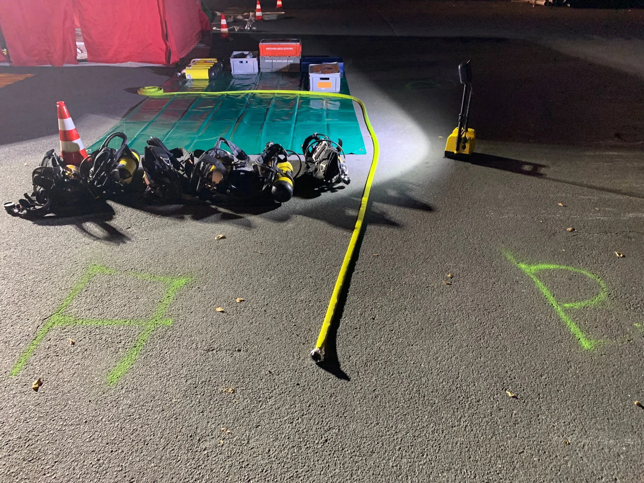 Unsere Einsatzkräfte unterstützten die Achimer Kameraden bei der Atemschutz-Überwachung und sicherten den Abschnitt der Einsatzstellen-Hygiene sicher.