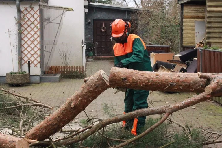 Der dritte Einsatz rief die die Einsatzkräfte in den Stichweg. Ein Baum fiel auf das Nebengebäude eines Wohnhauses. Auch dieser Baum wurde fachkundig zerlegt und dann mit einem Seil von dem Gebäude gezogen.